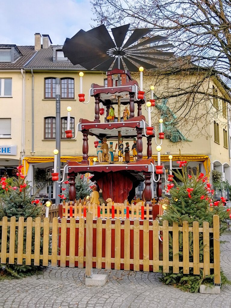 Kurz vor Weihnachten, der Weihnachtsbaum in Ohligs leuchtet, die Schwertschmieder arbeiten noch und die Pyramide dreht sich.